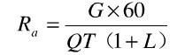 式中:Ra—磨內的球料比; G -- 磨內研磨體裝載量,(噸) ; Q – 球機產量,(噸) ; T -- 物料在磨內停留時間,(分) ,可根據實測確定。