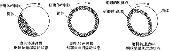 一、球磨機研磨體轉速與運動狀態之間的聯系,看圖知意: