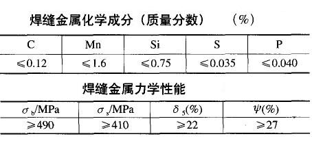 由于45鋼含碳量較高,且大齒輪的厚度大,形狀復雜,易產生裂紋,因此綜合考慮選擇J506焊條( 3.2mm)其焊縫金屬化學成分及力學性能如下表所示。焊條焊前需經350℃烘干2h,烘干的焊條應放在保溫筒內,隨用隨取(1~4h內)。