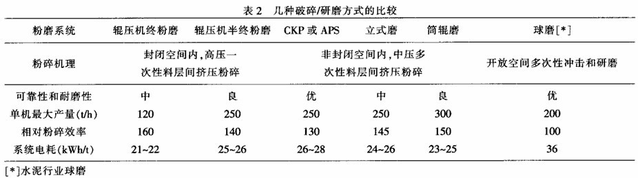 上表2是幾種不同的破碎/研磨方式的效率對比,可以看到,球磨方式其實是一種相對低效的破碎研磨方式,所以,只要工藝允許,就應該使用其他形式的破碎/研磨方式,將物料盡量破碎到足夠細,最后再使球磨機研磨以滿足工藝的要求,這樣可以有效的減少能耗。