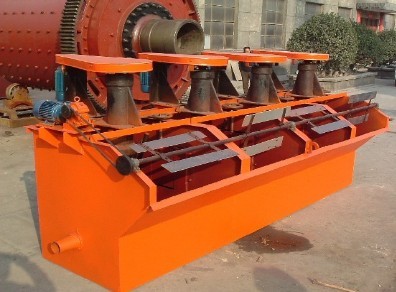 浮選機工作是在磨碎的礦石里加入水和一定的藥劑充分?jǐn)嚢瑁{(diào)成礦漿后,向礦漿中導(dǎo)入空氣,形成大量的氣泡,使疏水性(不易被水濕潤)的礦物粒子選擇性地固定在氣泡上,并與氣泡一起浮到礦漿表面,然后調(diào)節(jié)閘板高度,控制液面,用刮板刮出有用泡沫,形成泡沫產(chǎn)品。其余部分則保留在礦漿中,以達(dá)到分離礦物的目地。